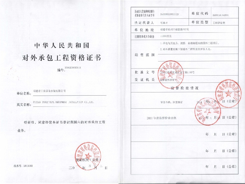 Qualification Certificate Undertaking International Contracting Business